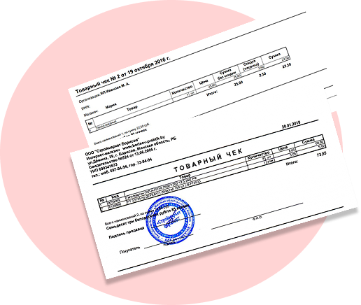 - Чеки от реальных компаний прошедшие проверку